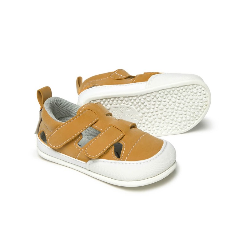 La sandalia con dos velcros fácil de poner y quitar para bebés.