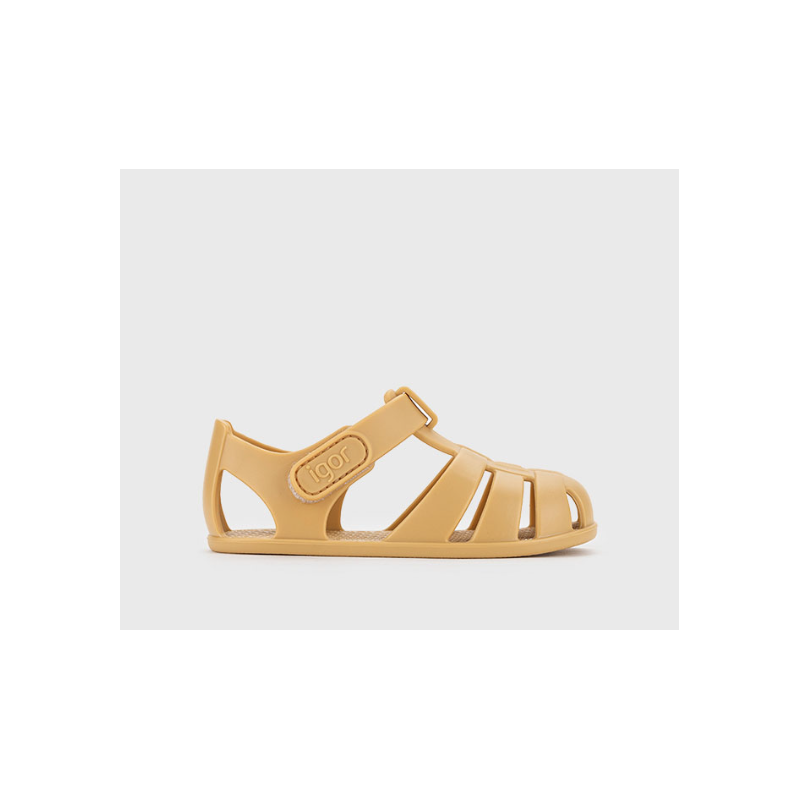 Cangrejera diseñada en concepto barefoot, cero drop, flexible y blandita, fabricada con al menos un 50% de pvc reciclado libre de ftalatos y cierre adherente