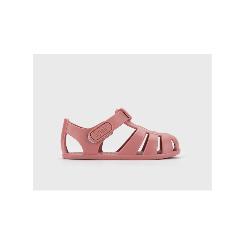 Cangrejera diseñada en concepto barefoot, cero drop, flexible y blandita, fabricada con al menos un 50% de pvc reciclado libre de ftalatos y cierre adherente