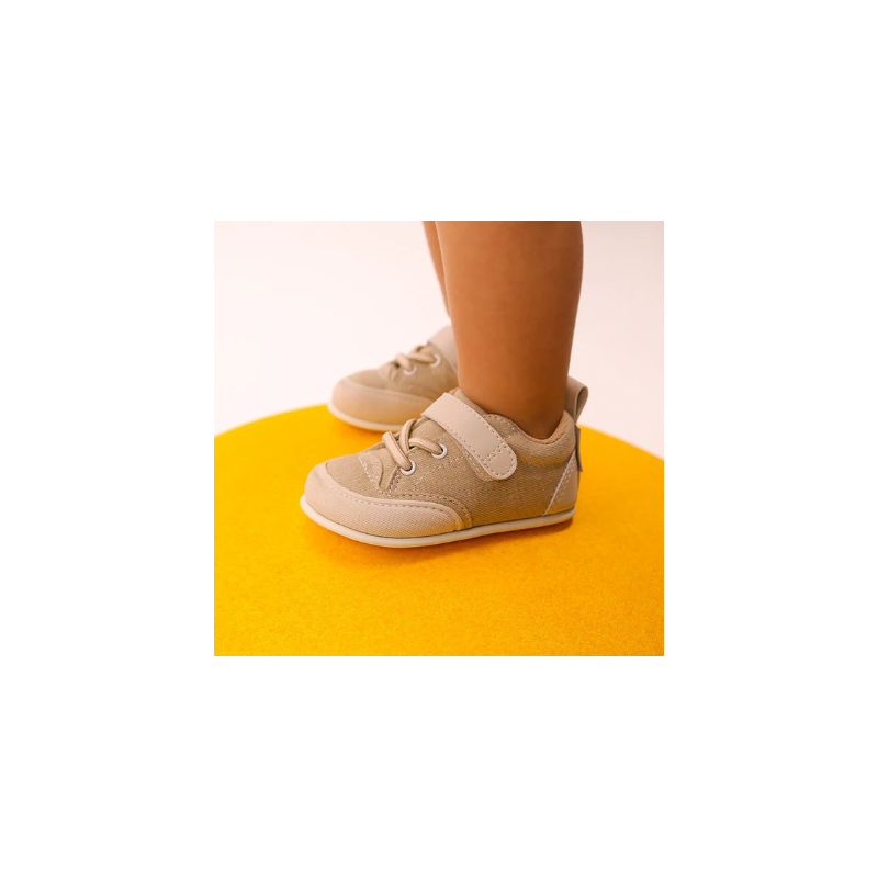 Suela plana, fina y ultra flexible. Garantiza una conexión sensorial con el suelo, promoviendo un desarrollo saludable del pie.
