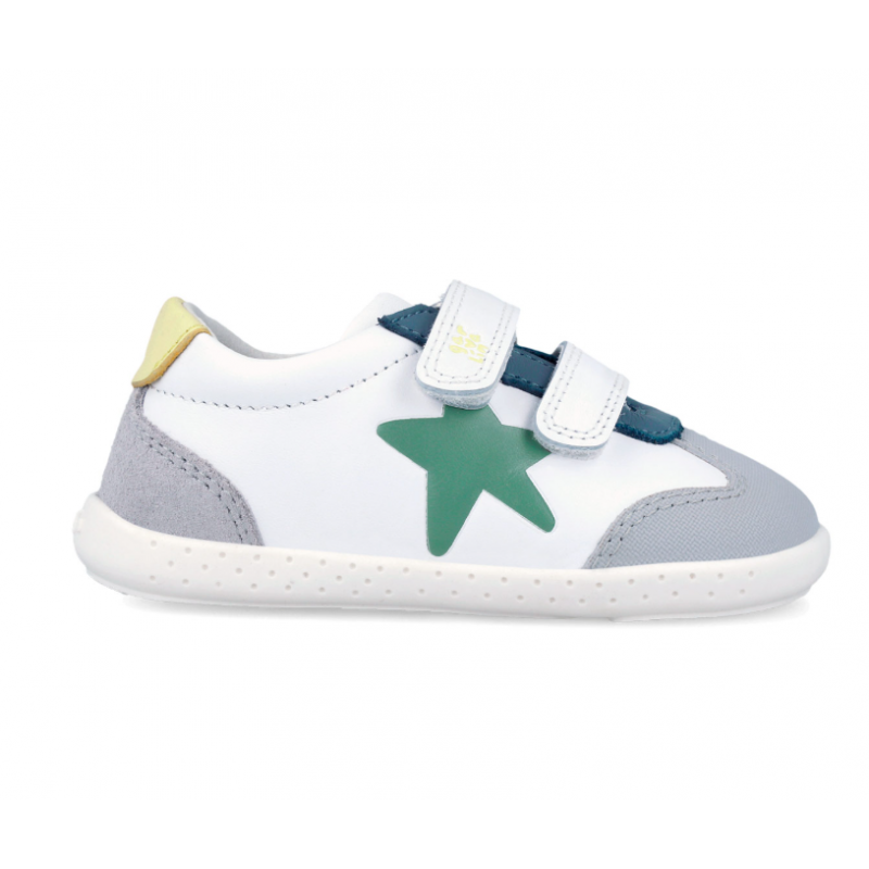Zapato deportivo confeccionado en piel con cierre de doble velcro.